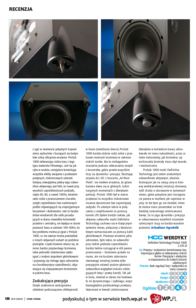 "Definietive Technology SM65 może nie zachęcają wyglądem i przy tym trudniej je ustawić niż większość innych kolumn. Ponadto są na tyle przezroczyste, że z budżetową elektroniką za 5-10 tys zł pokażą tylko część swojego potencjału. Warto jednak spróbować - zwłaszcza jeśli szukamy przestrzennie brzmiących monitorów, naturalnie i gładko odtwarzających klasykę czy jazz, niestroniących przy tym od popu czy rocka."
